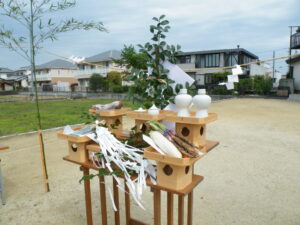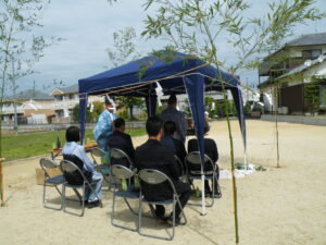 行われた地鎮祭は、厳かのなかにも笑い声の絶えない